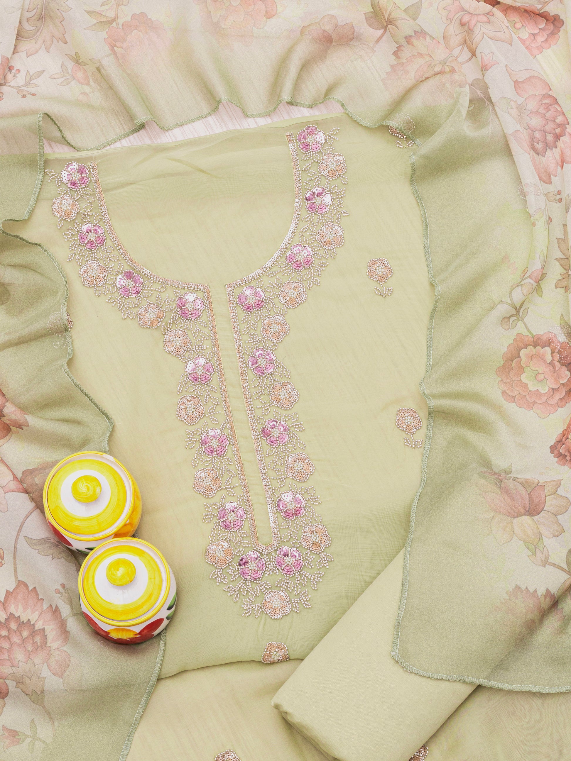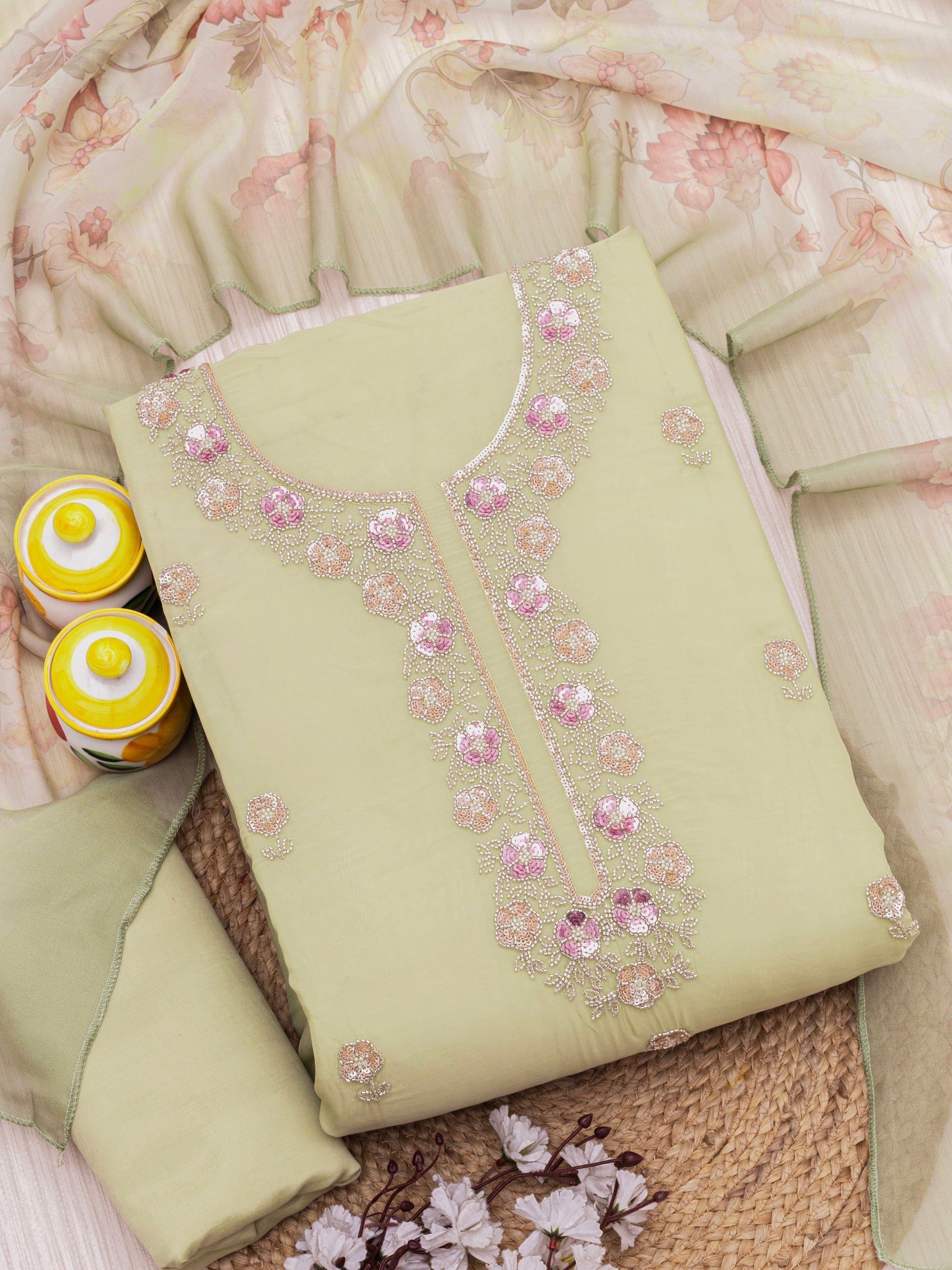 Embroidered unstitched dress material
