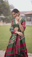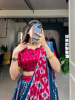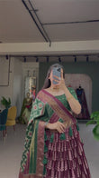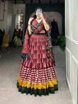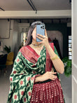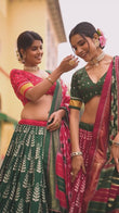 | Adorned in printed Tusser silk lehenga choli, one dances through celebrations like a vision from a timeless dream, blending heritage with contemporary flair |
