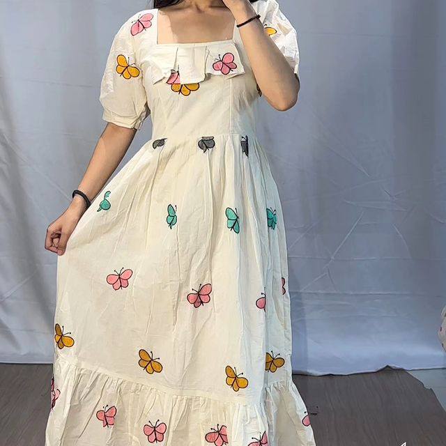 | Celebrate this joy of dressing in the best way here presenting you a beautiful Summer maxi for the upcoming season with beautiful brids All Over |