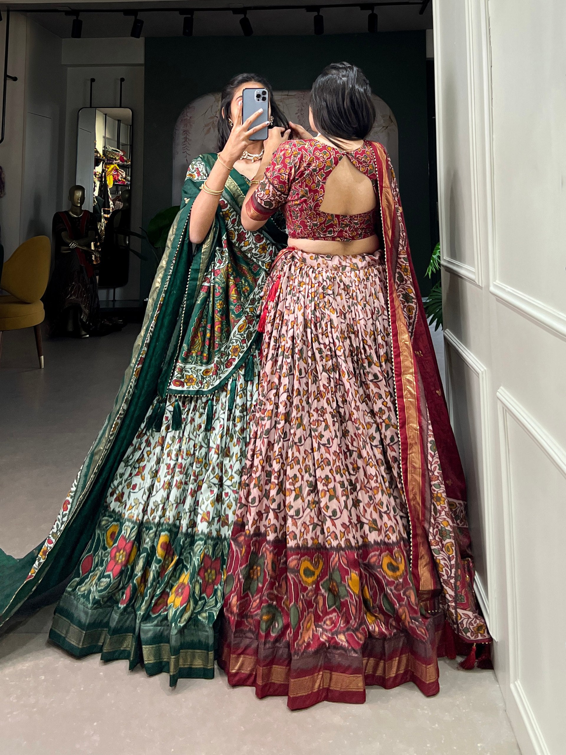 | Package Contain : Lehenga, Blouse, Dupatta, Drawstring with Zip, Tassels |