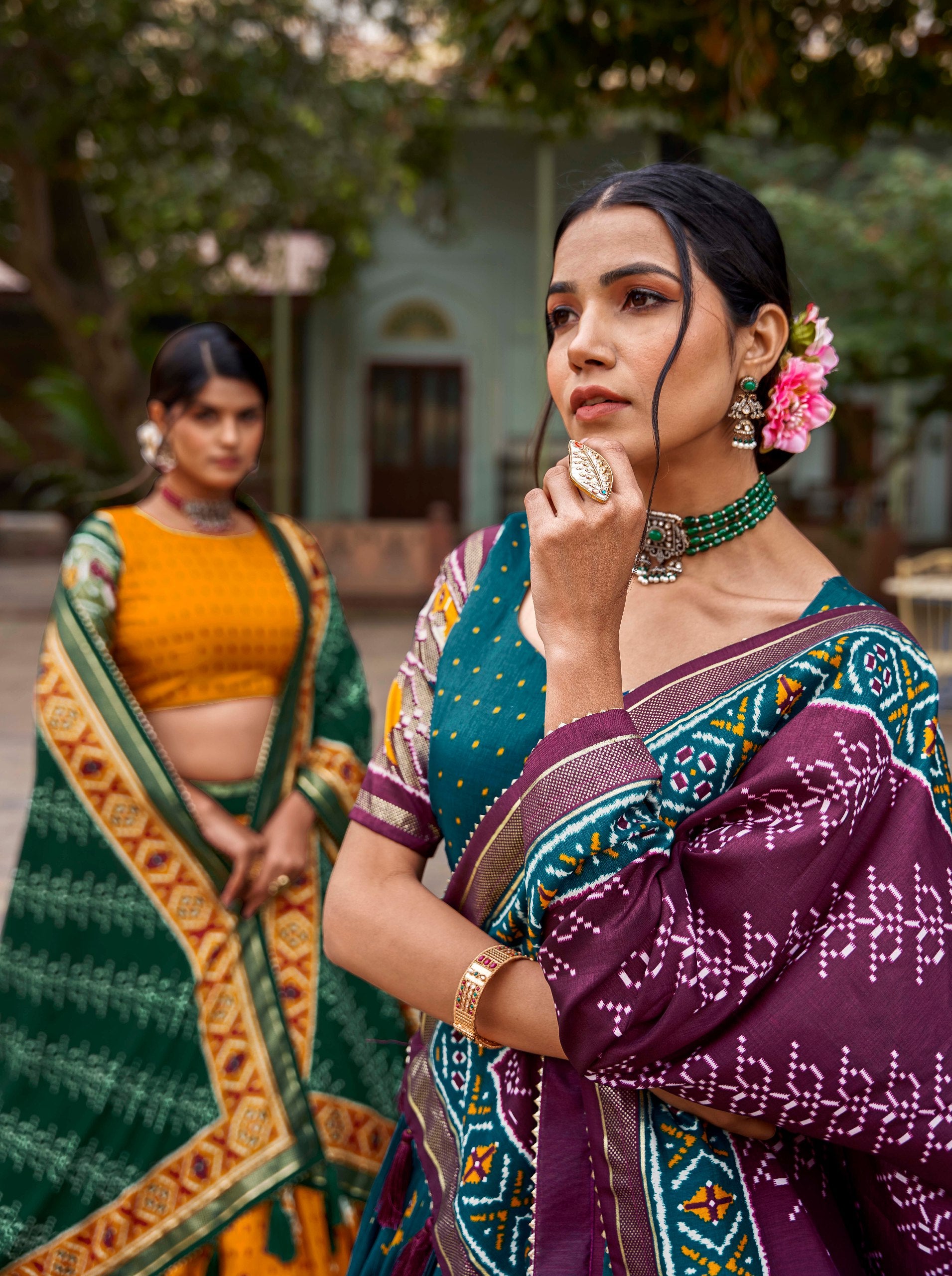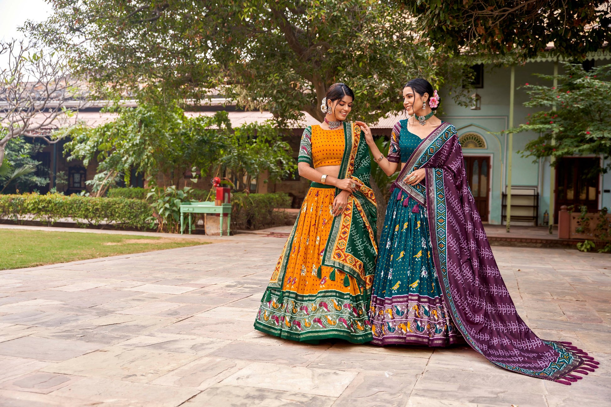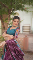 XOOMLADY ikkat Patola prints with this exquisite lehenga choli ensemble