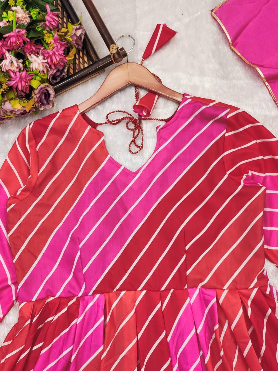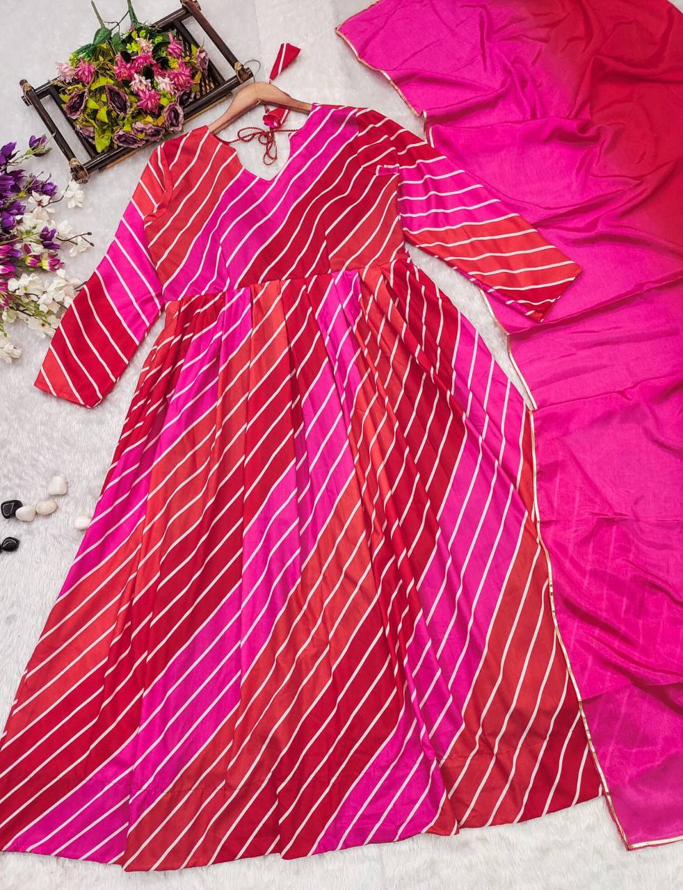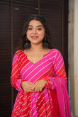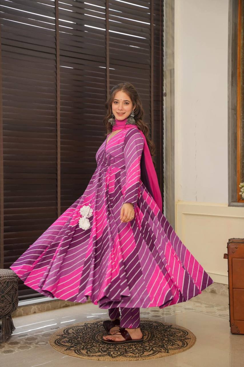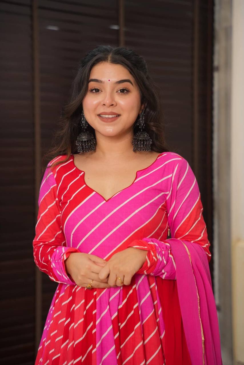 | Introducing our stunning Leheriya suit set in luxurious Muslin fabric. Exquisite craftsmanship and vibrant patterns make it perfect for any occasion. Elevate your style with this timeless, elegant piece |