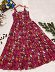 | Printed full flare in sleeveless. adorned with details fit for any upcoming celebrations |