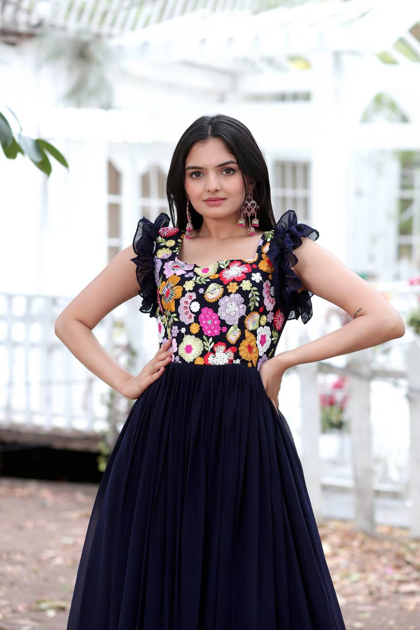 | FABRIC & WORK | Faux Blooming With Sequins Multithreaded Embroidered work |