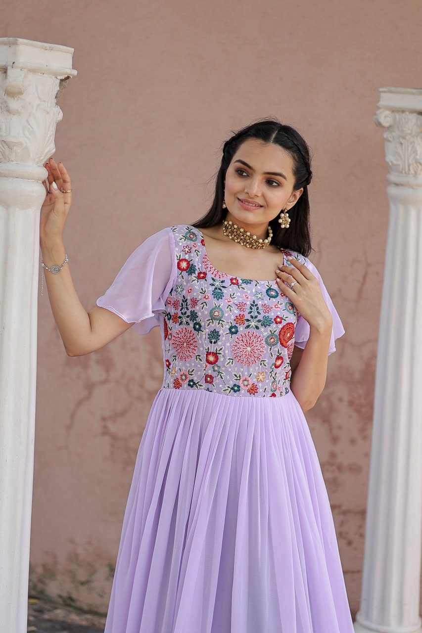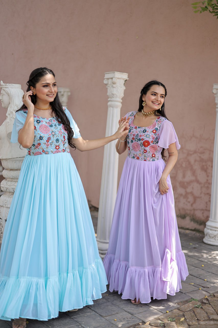 | FABRIC & WORK | Faux Georgette With Sequins Multithreaded Embroidered work |