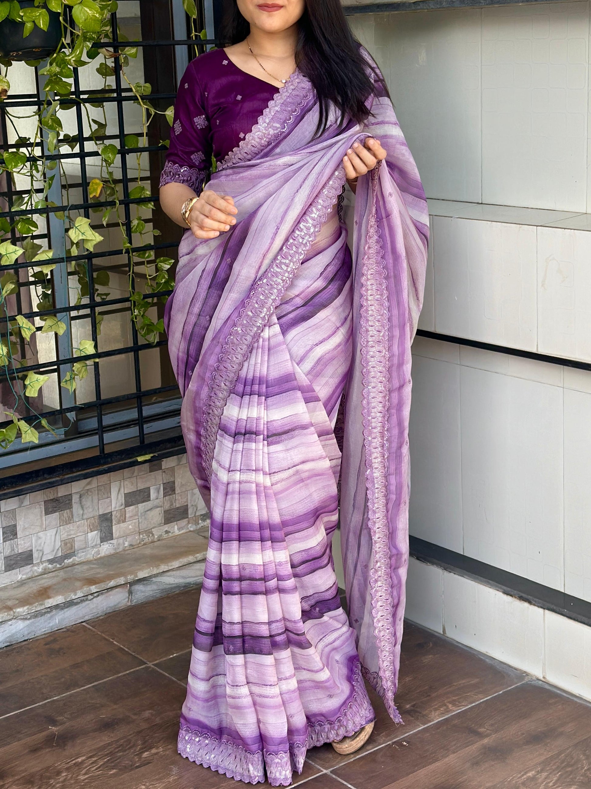 Saree- Digital print & sequin cut work.