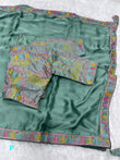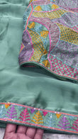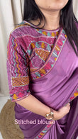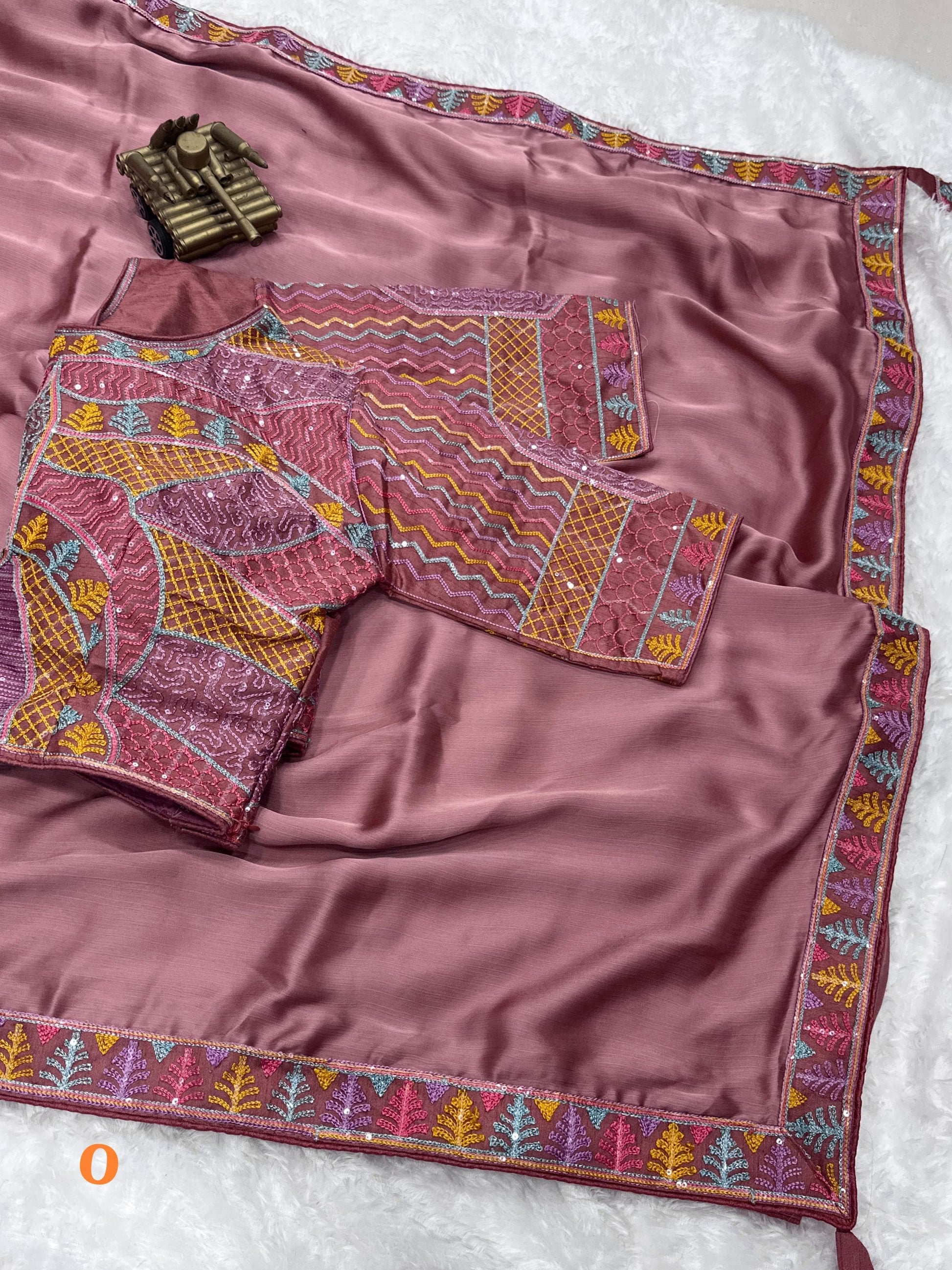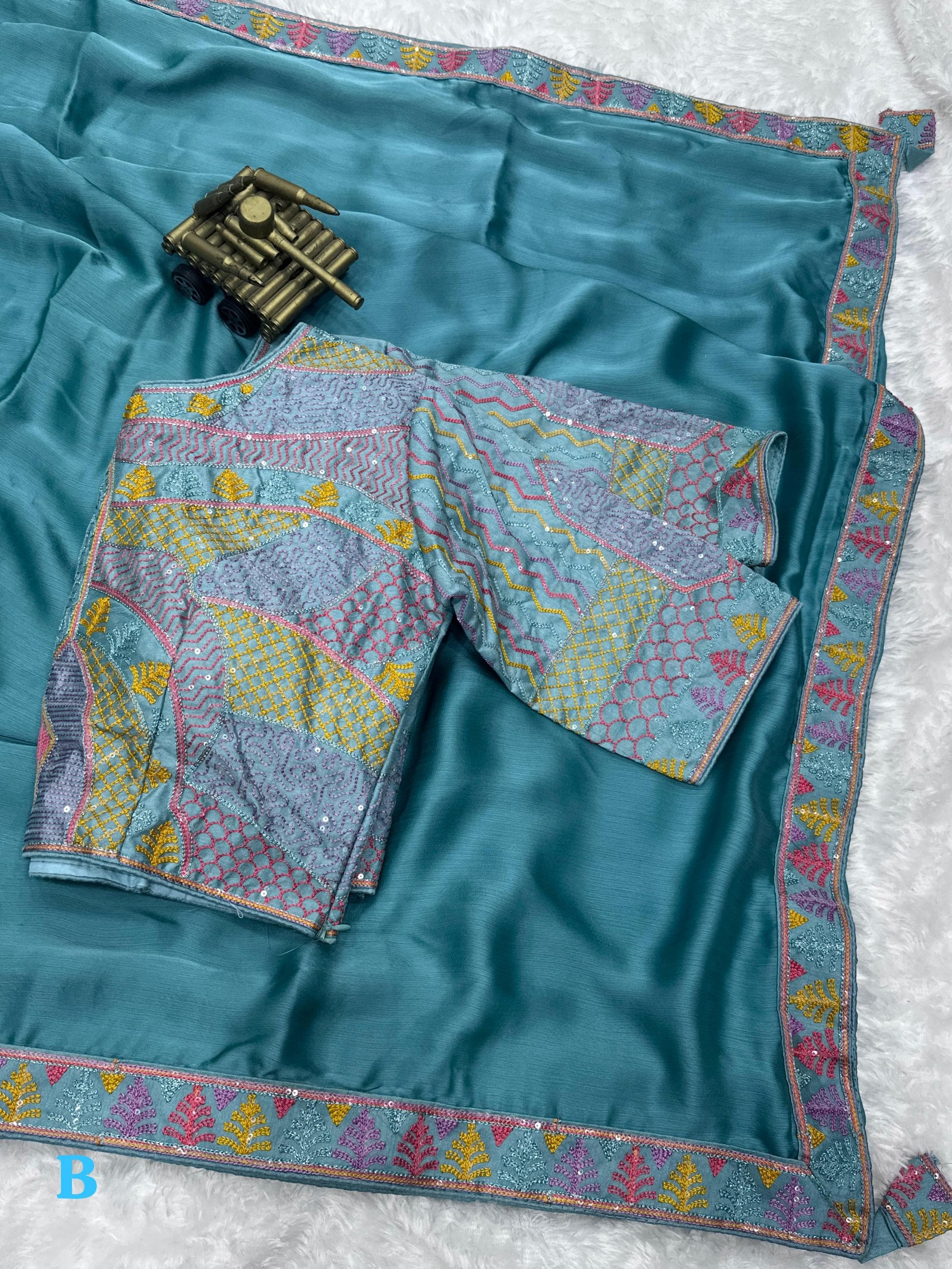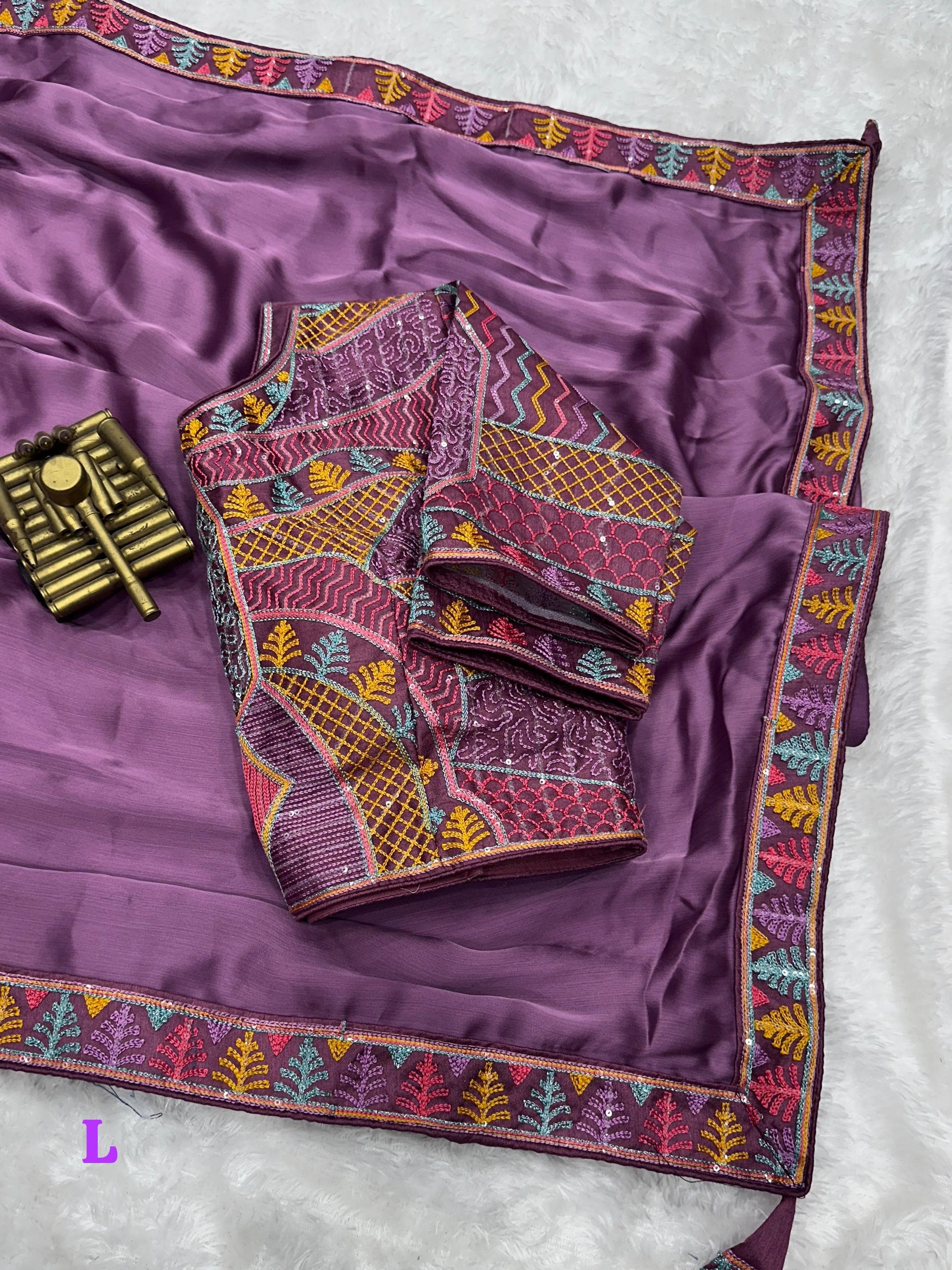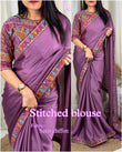 Xoomlady Present Plan solid saree with embroidery lace & stitched blouse