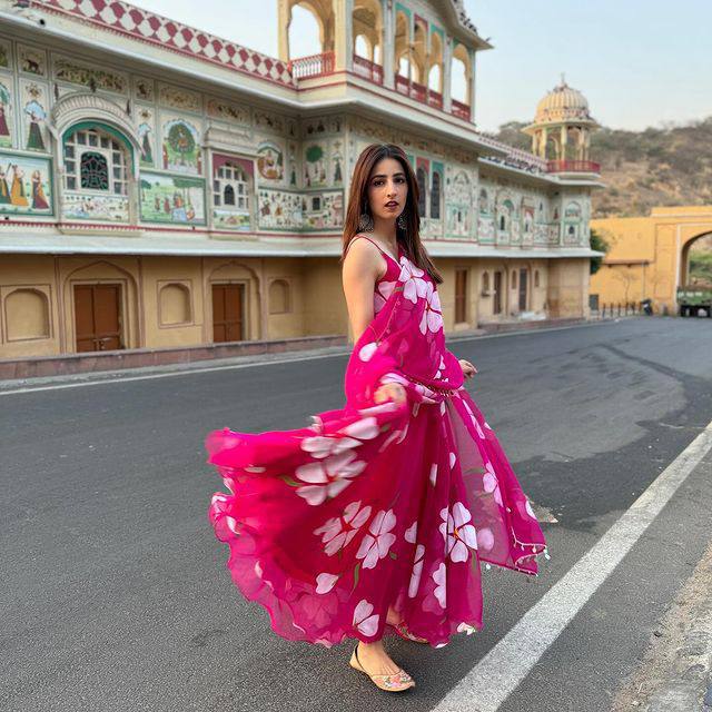 XOOMLADY Presenting You A Beautiful Floral Anarkali With Monochrome Dupptta