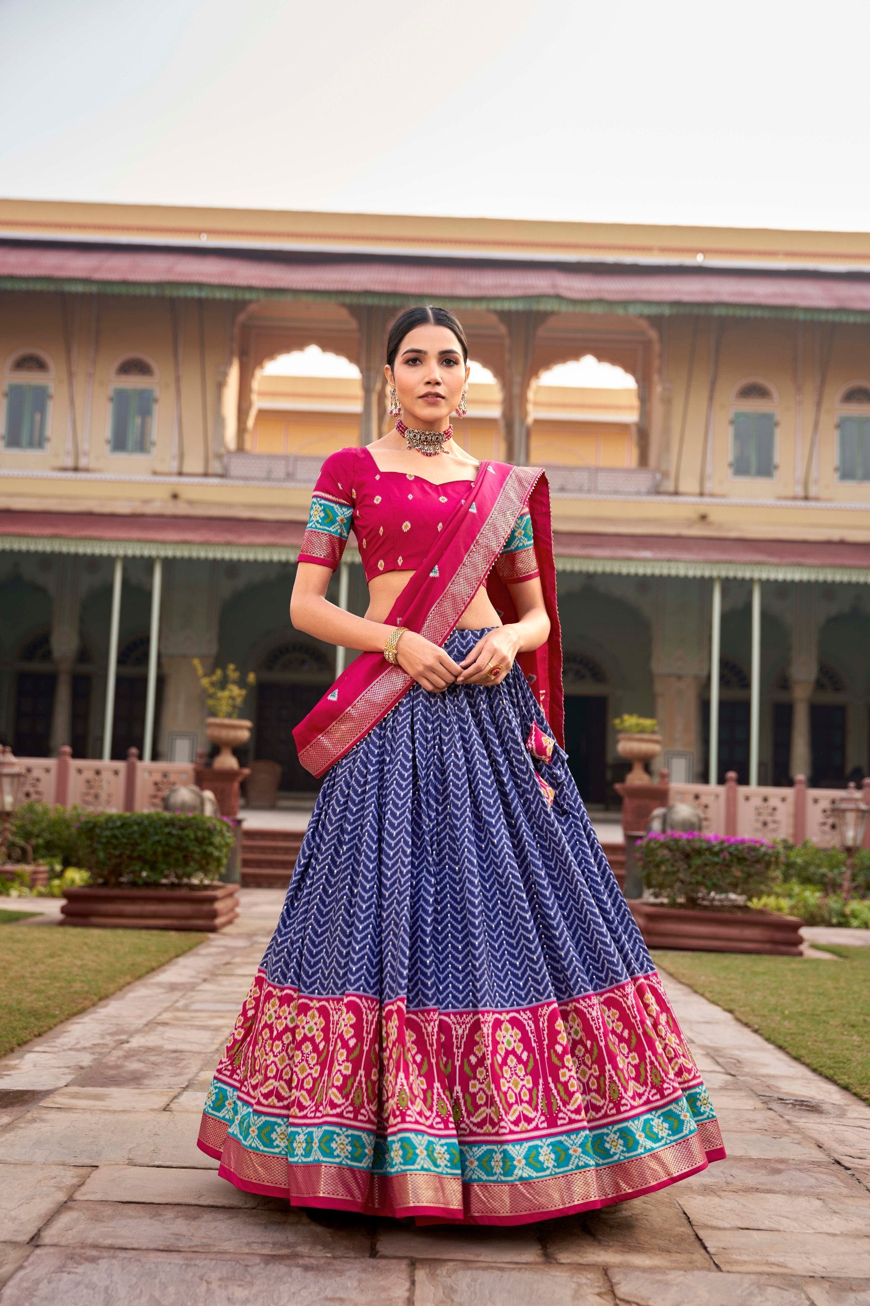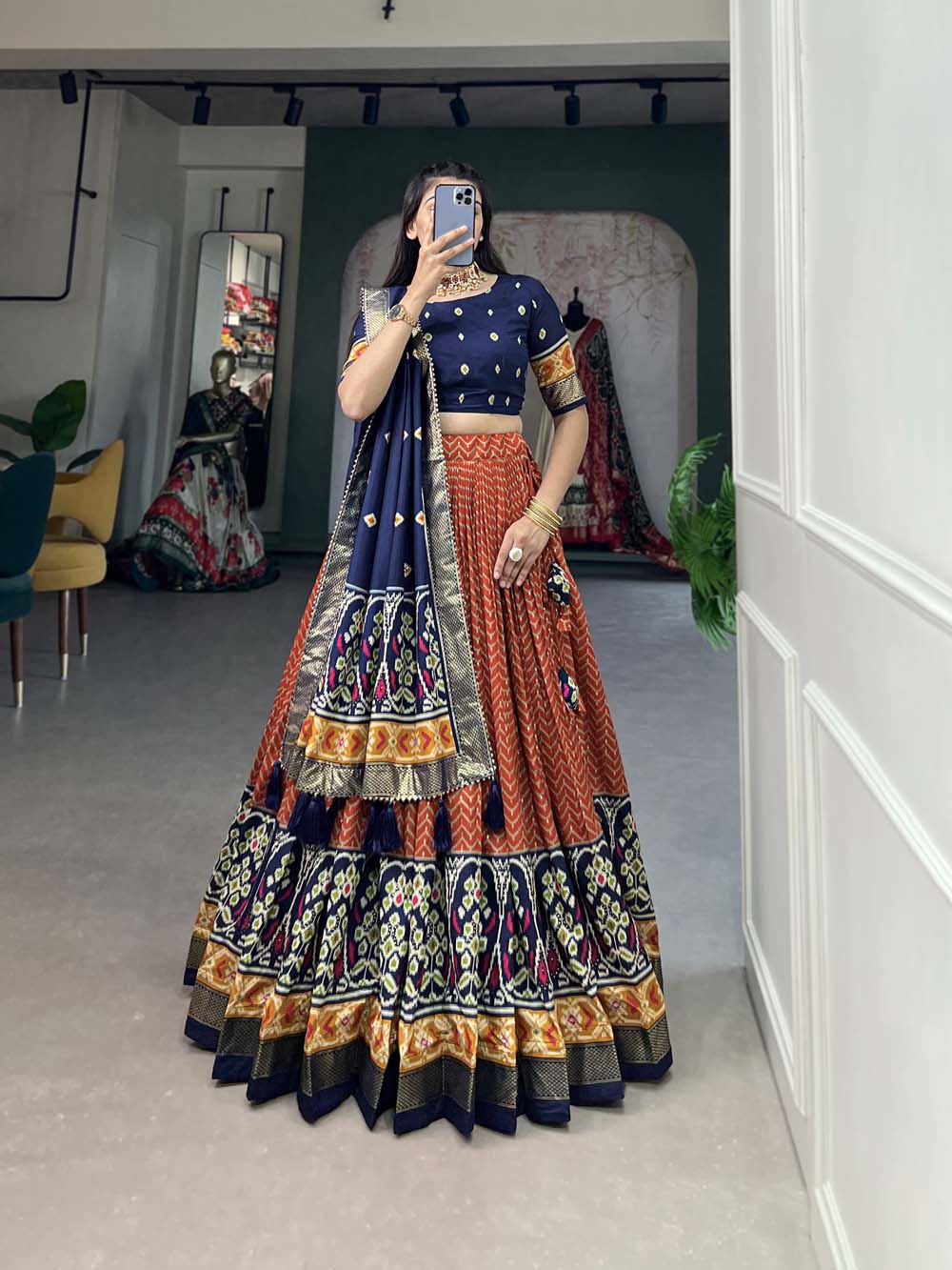 XOOMLADY Step into the spotlight with confidence in our Tussar silk printed lehenga choli