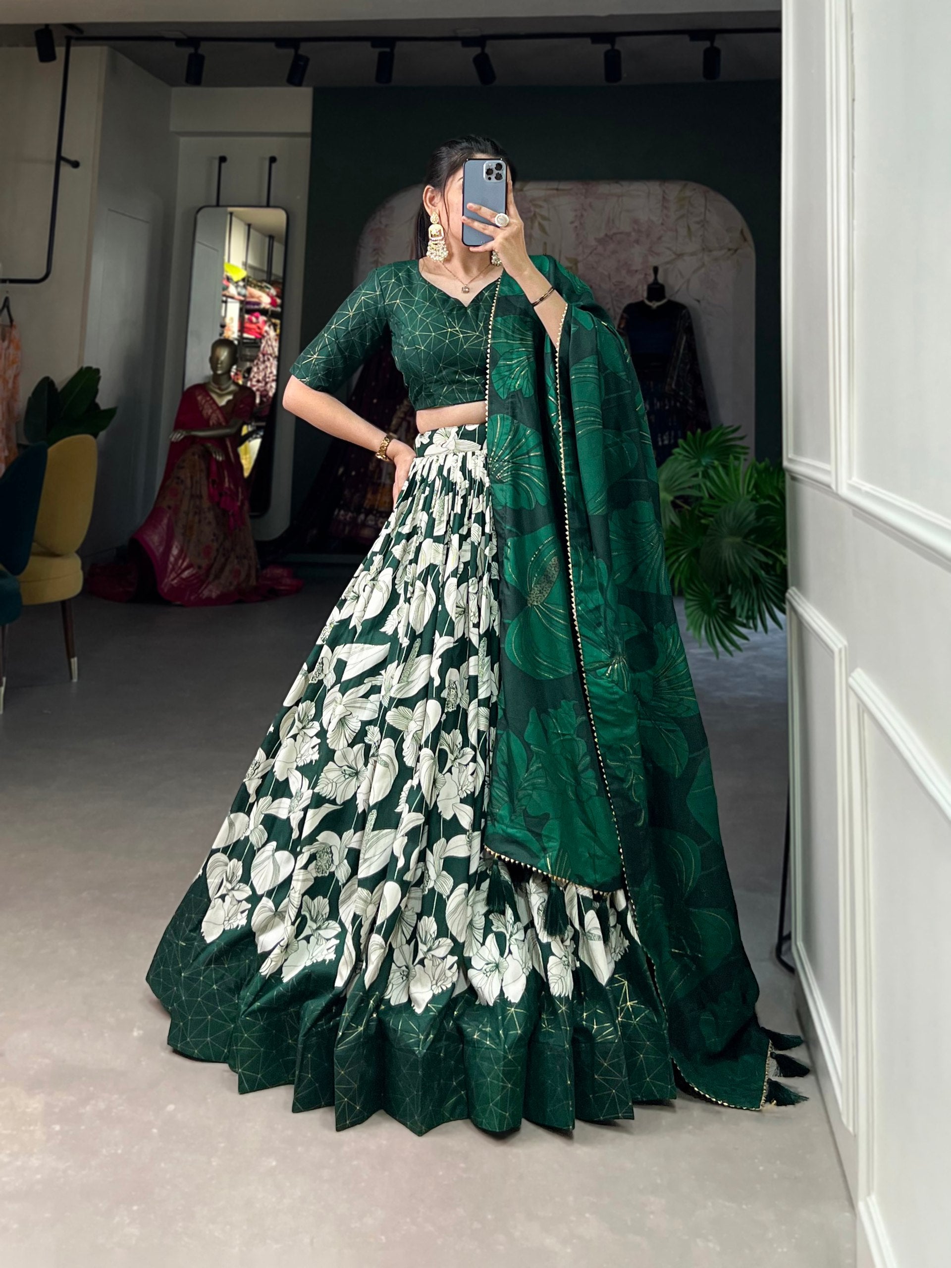 | Lehenga Work : Floral Print With Foil Print |
