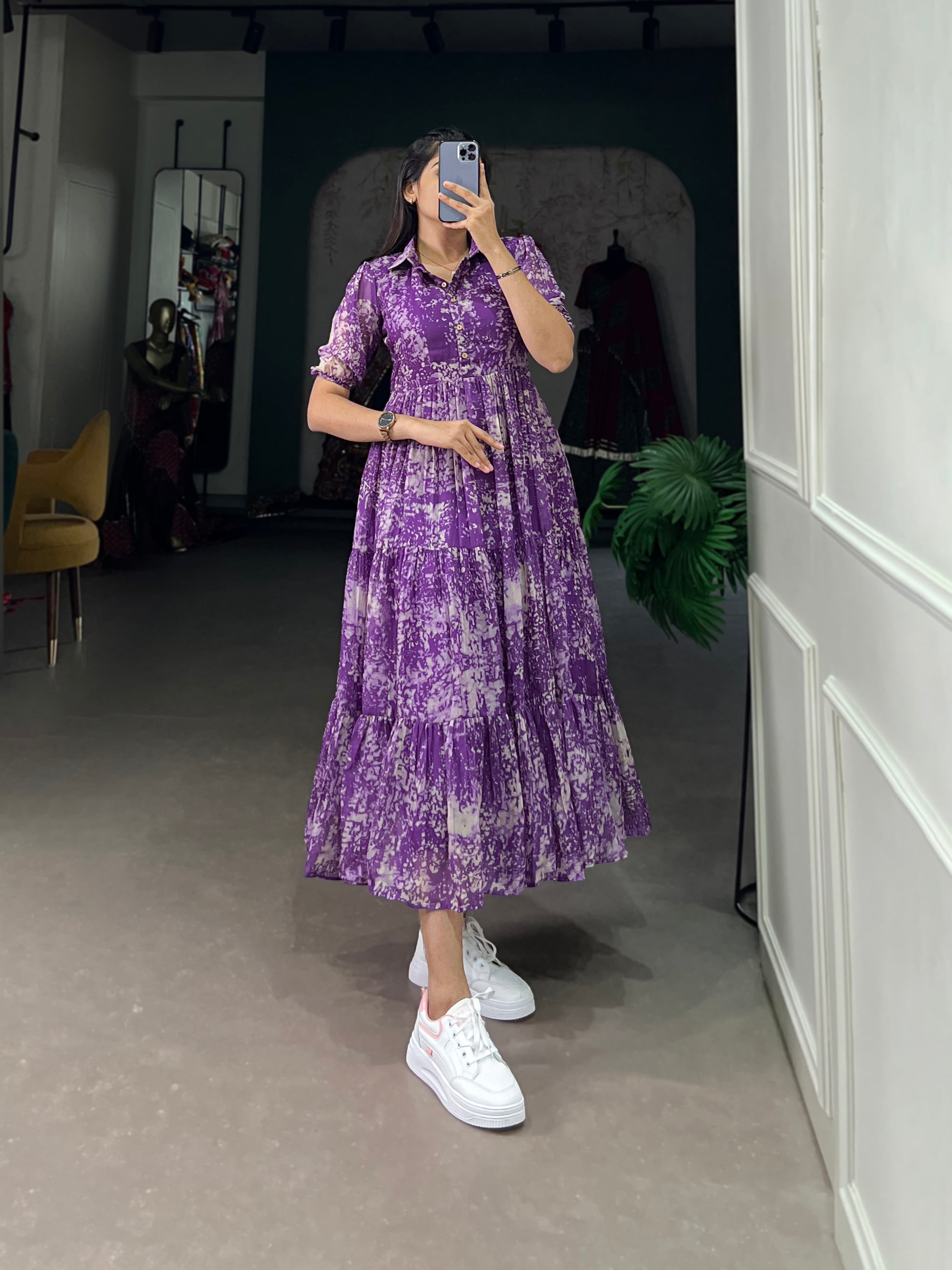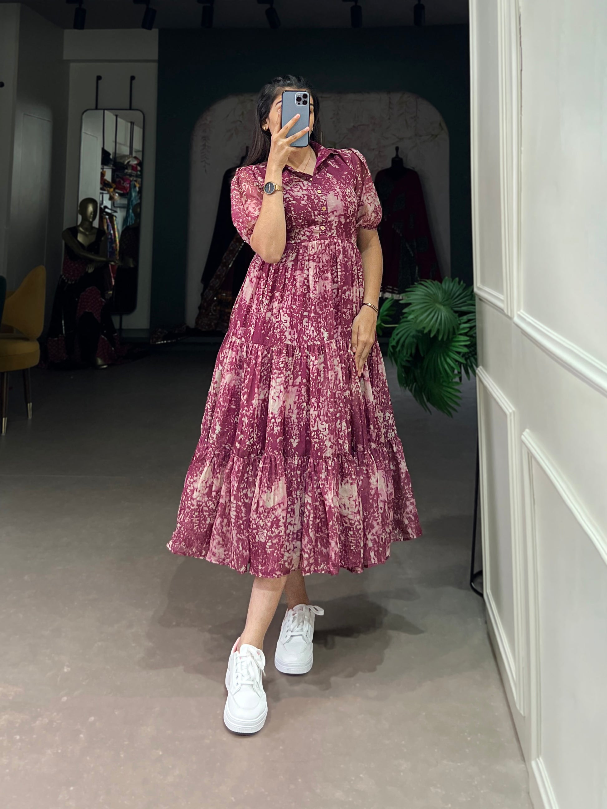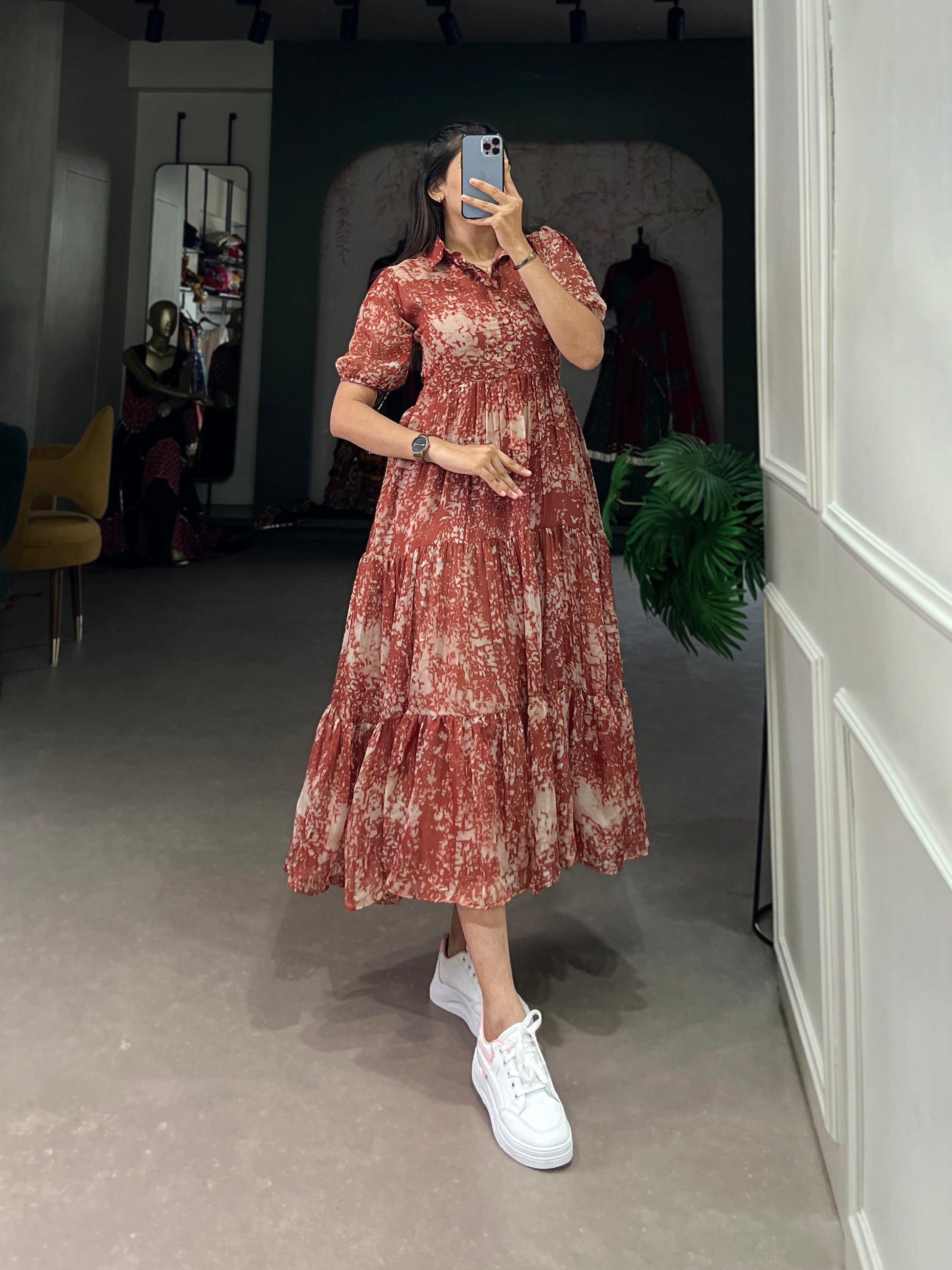 XOOMLADY Trendy Tabby Silk Collared Frock