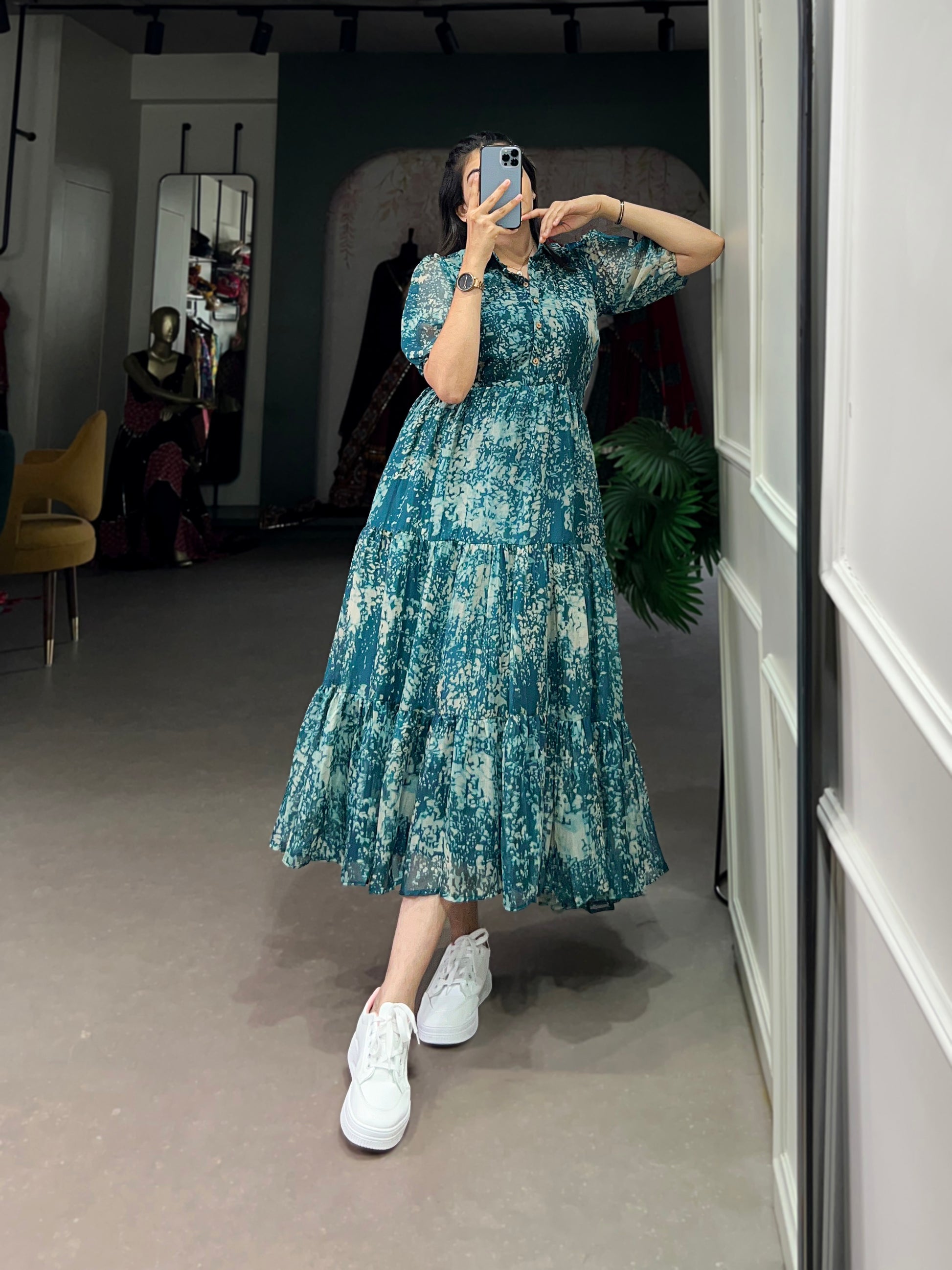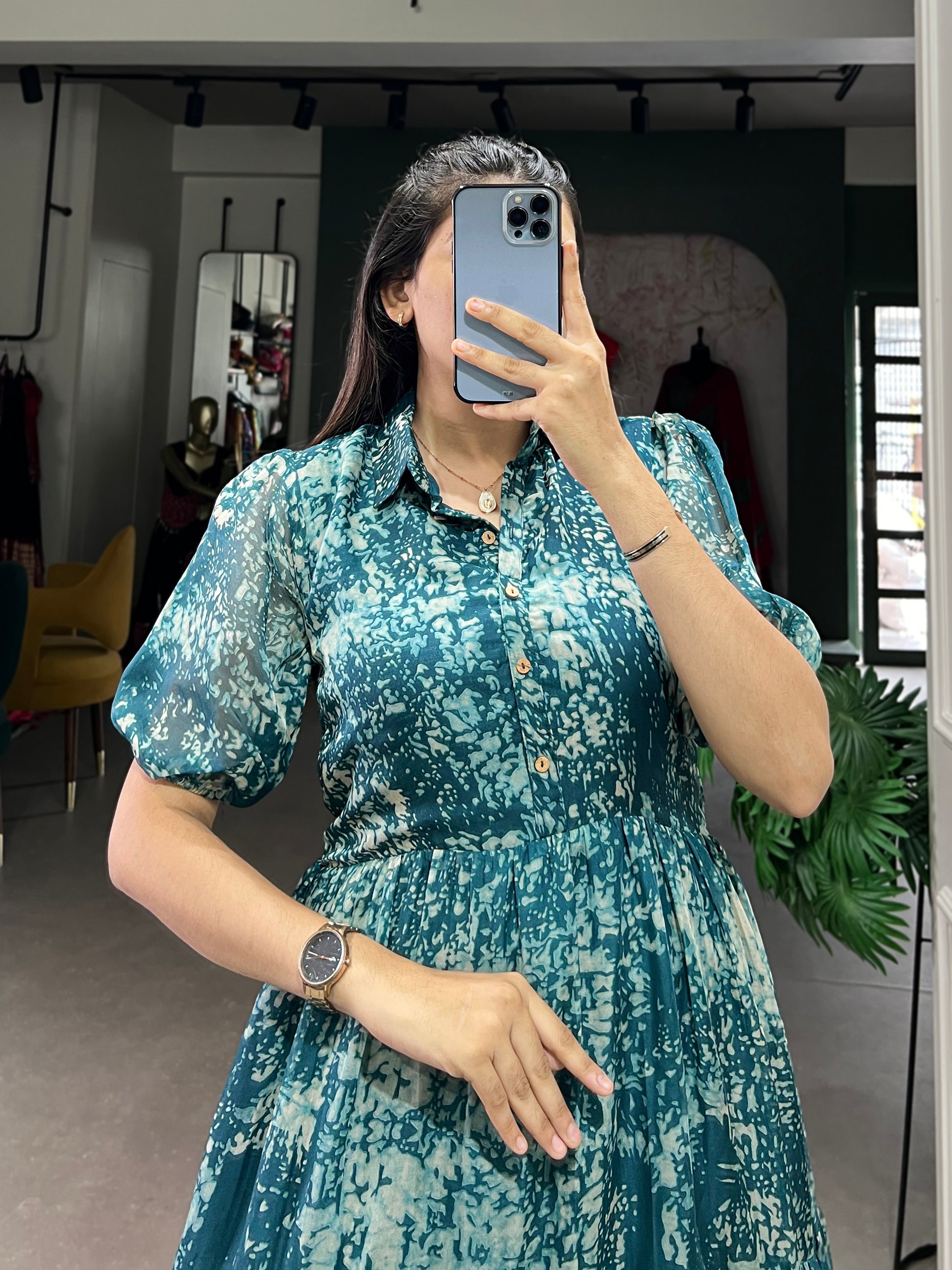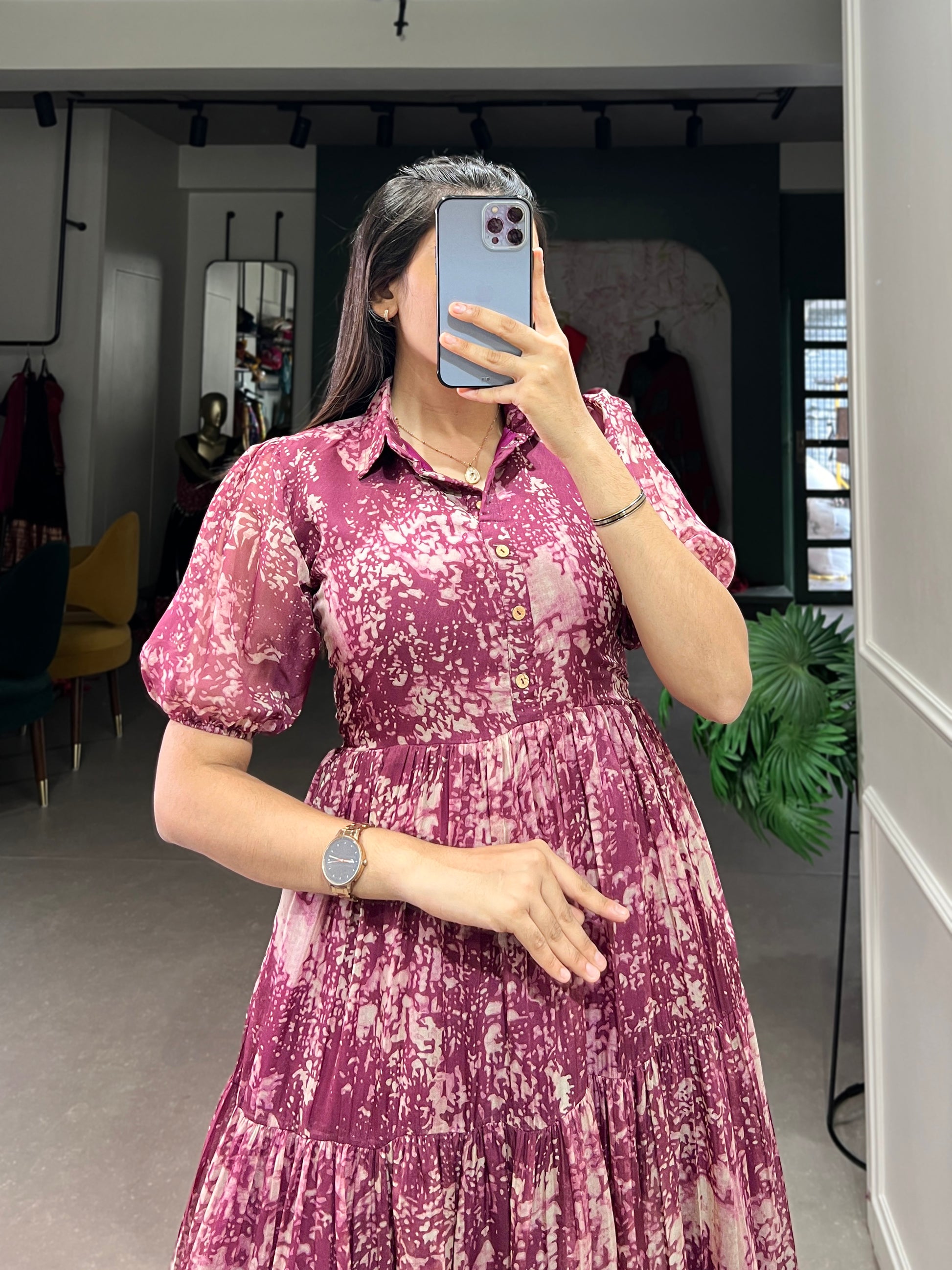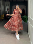XOOMLADY Trendy Tabby Silk Collared Frock