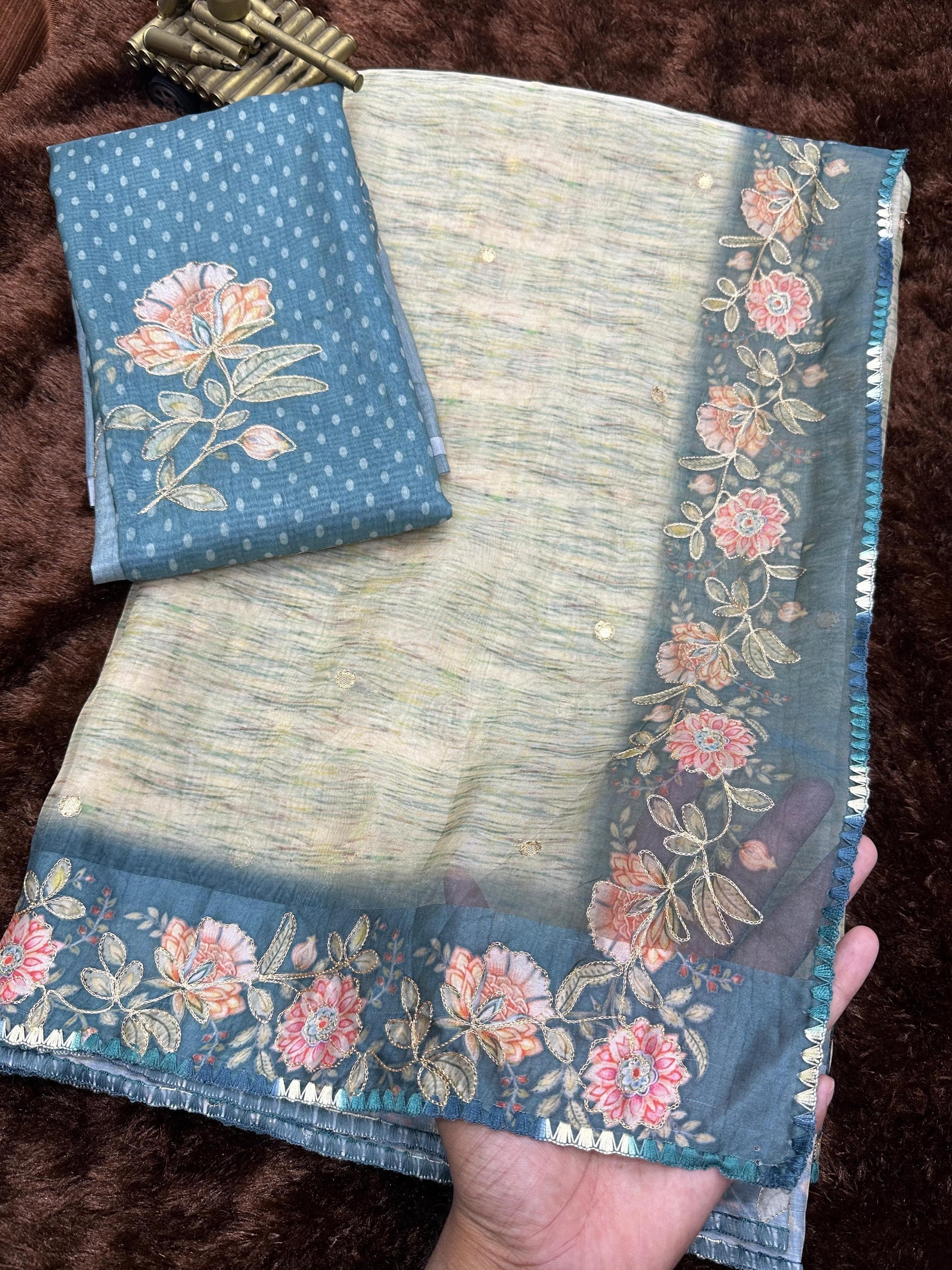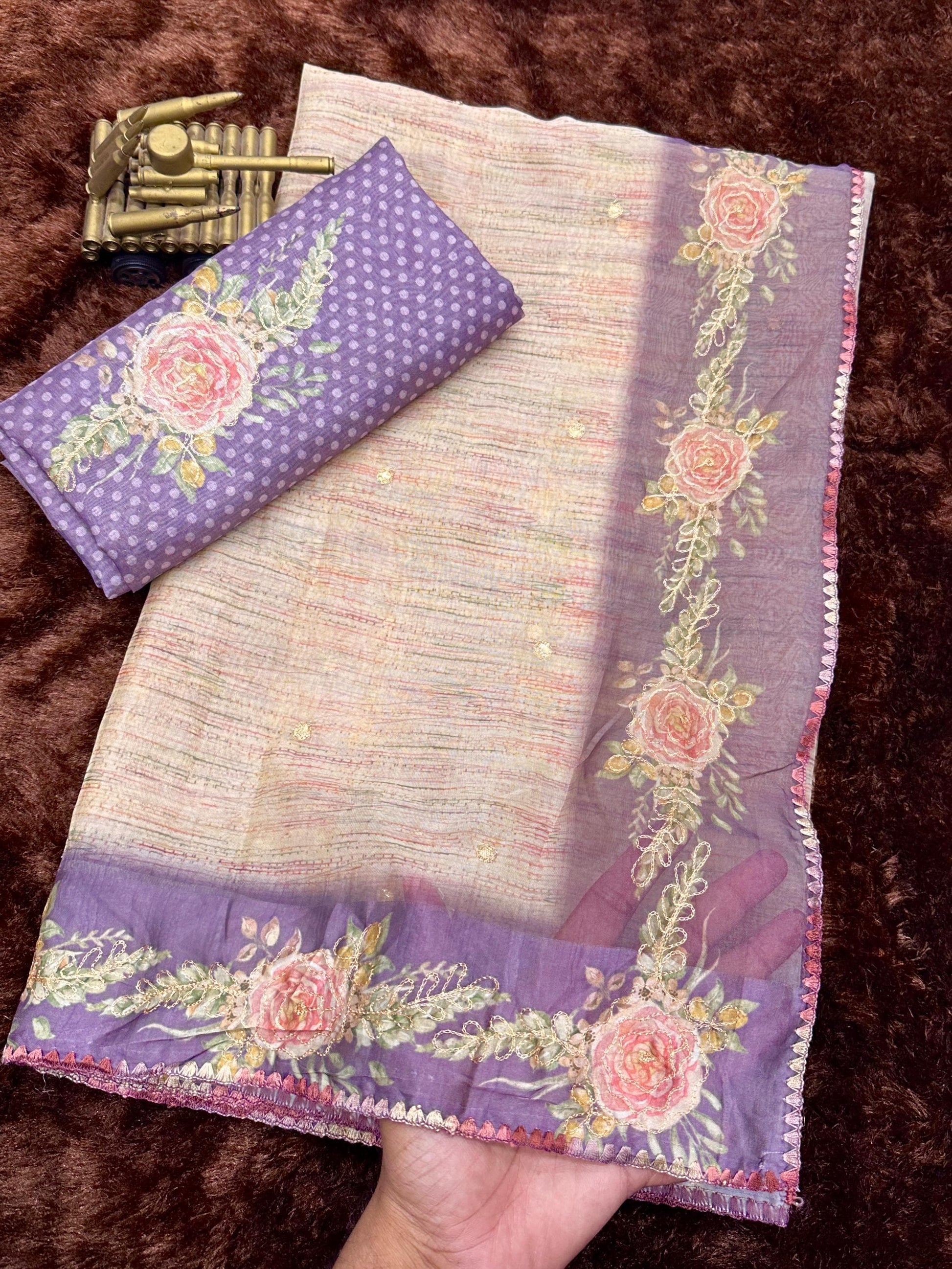 1-Digital print in saree with satin border with multi thread kangiri work in the saree border